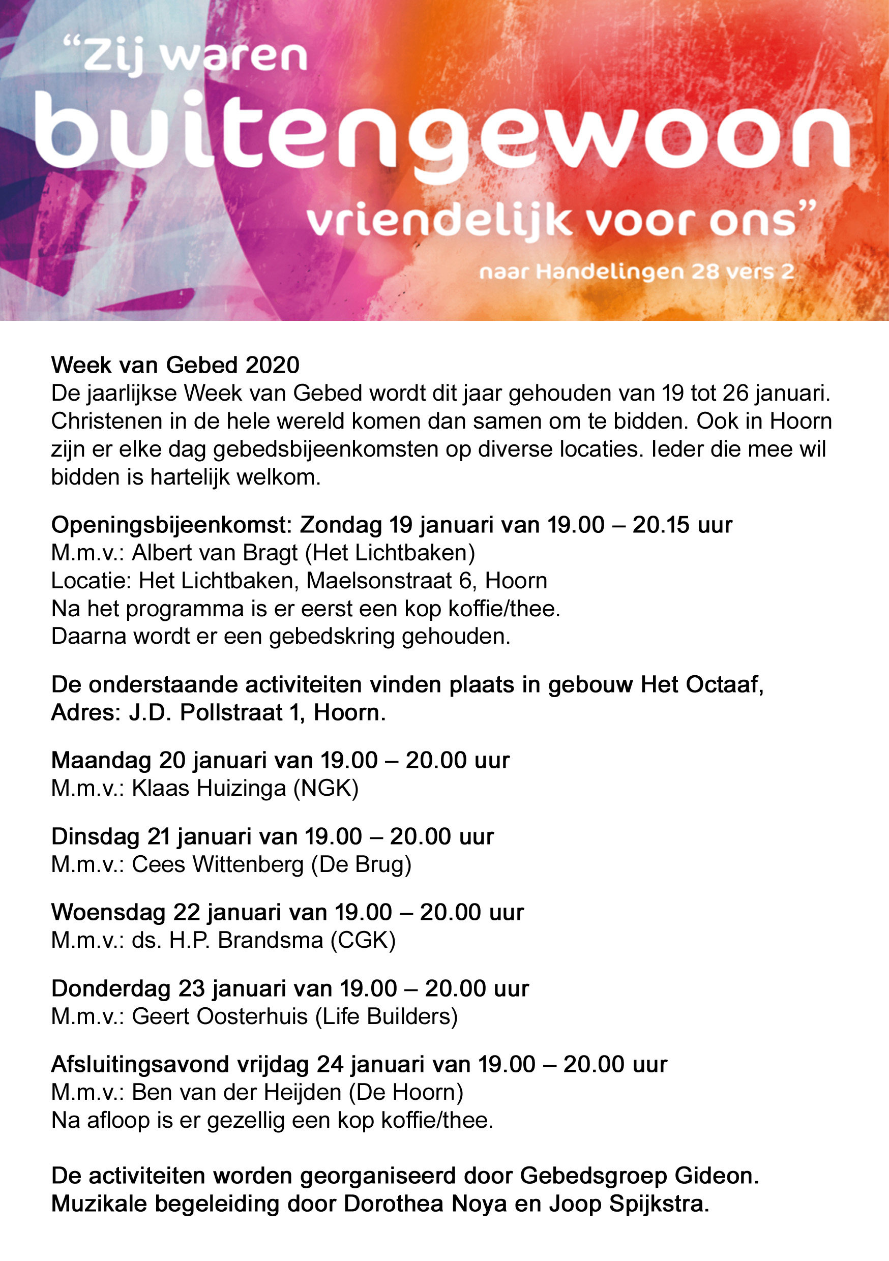 De collecte van deze dankdag werd bestemd voor het Maaltijdproject ‘Warm Onthaal’. Daarbij ontvangen mensen die dat nodig hebben wekelijks een steuntje in de rug met een gezamenlijke warme maaltijd. Wilt u dit mooie project persoonlijk ondersteunen met een gift? Lees de informatie op de website van Het Straatpastoraat Hoorn.